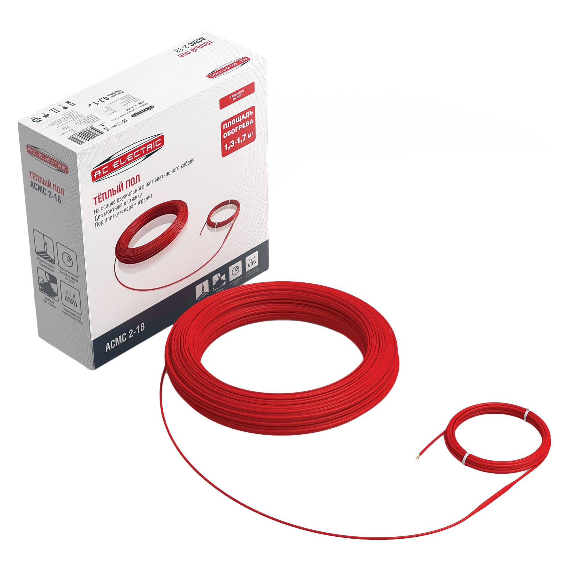 Греющий кабель AC Electric серии ACMC — это готовый к использованию двухжильный кабель для систем обогрева пола и защиты от обледенения. Он обеспечивает равномерное распределение тепла и отличается высокой надёжностью, долговечностью и простотой монтажа.